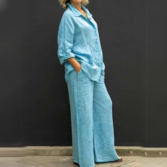 Lilian® | Casual geometric non-positioning printed pocket, turn-down collar, long sleeves, two-piece