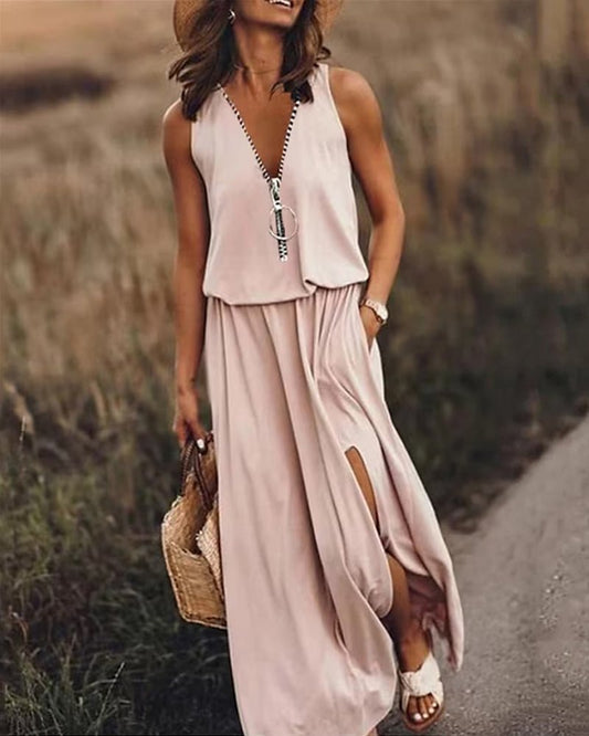 Adalgisa® | Elegant Cotton Mix Zip Dress With Slit