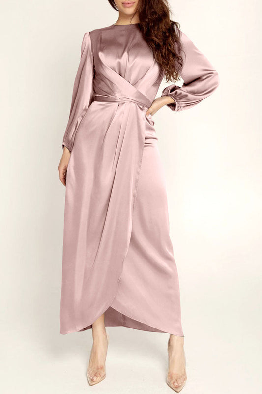 Felicidad® | Street Solid Buckle O-Neck Pencil Skirt Dresses