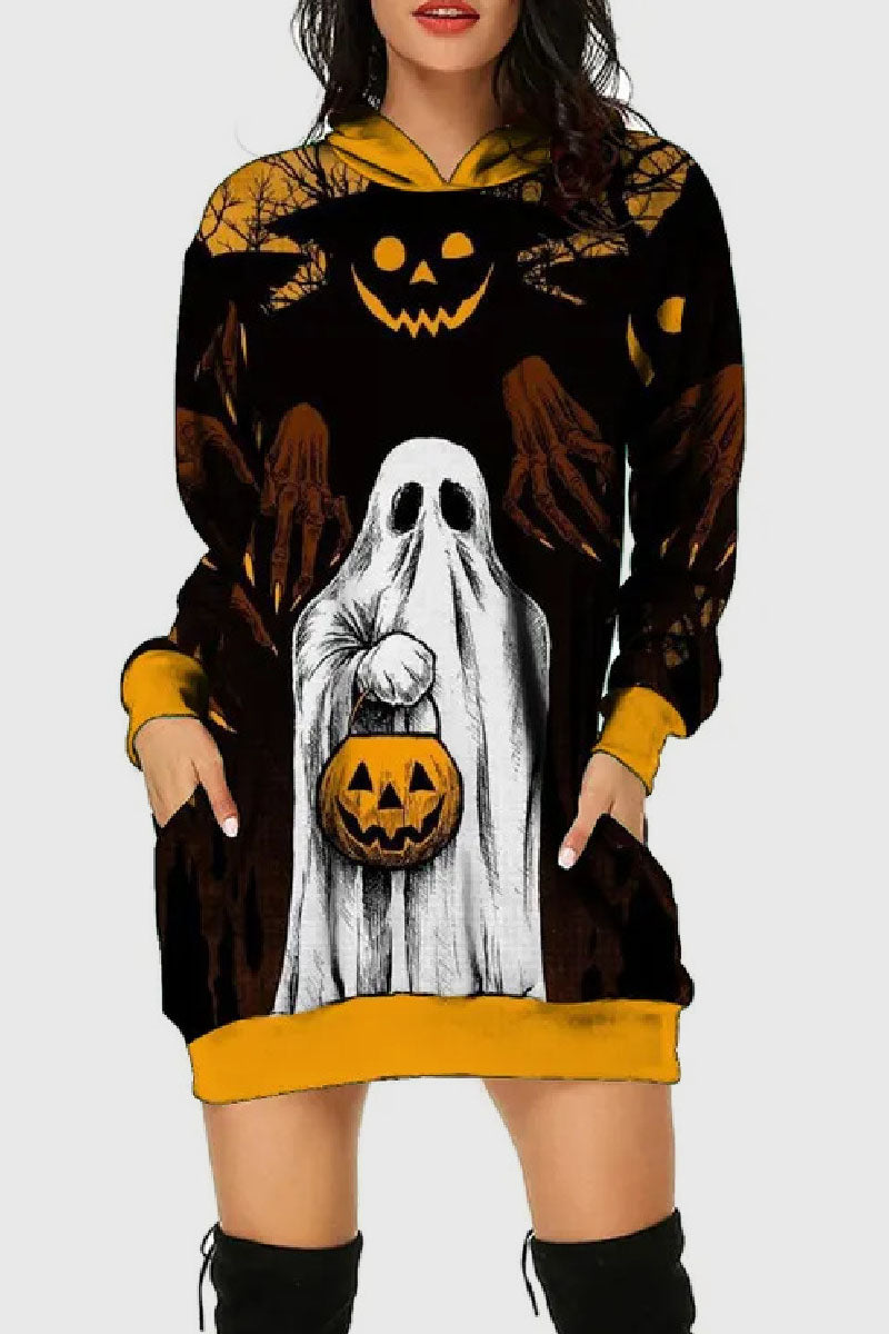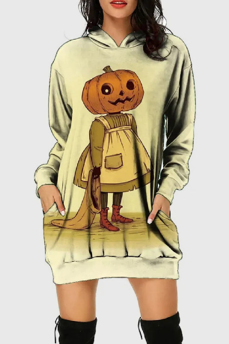 Dolores® | Casual printed basic dresses with a hood and long sleeves